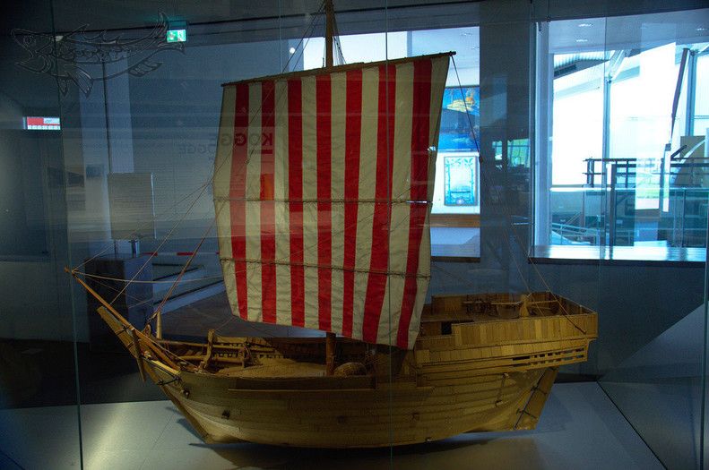 Nun bin ich zwar gebürtiger Cuxhavener und Hansebegeisterter, habe es aber in all den Jahren nicht geschafft, mir die Bremer Hansekogge anzuschauen. Die 1962 entdeckte Kogge ist im Deutschen Schifffahrtsmuseum Bremerhaven ausgestellt und meine Frau und ich haben einen unserer wenigen Urlaubstage genutzt, um die Kogge mal unter die Lupe zu nehmen. Ich muss aber erwähnen, dass das Schifffahrtsmuseum Bremerhaven auch ansonsten eine Reise wert ist. Wer sich für Maritime Kultur und Technik begeistert kann, dort zum Beispiel einen Dampfbetriebenen Walfänger besichtigen oder eines der wenigen Betonschiffe (Ja, die gab es wirklich!). Zu futtern gibts z.B. auf der Seuten Deern. Zentrales Thema ist jedoch das Wrack der Hansekogge. Die Koggen waren eine Erfindung des Hochmittelalters und eines der Hauptstandbeine des Hansischen Wirtschaftserfolges. Ein gutes Verhältnis von Oberfläche zu Volumen, bei gleichzeitig guter Manövriebarkeit machte sie zu idealen Handelsschiffen. Es war seinerzeit auch üblich, das sich mehrere Kaufleute zusammenschlossen und jeder seine Waren auf mehrere Schiffe verteilte. So lag der Verlust bei Schiffbruch oder Überfall nicht bei 100% der Waren. Aber wie war das nun mit der Bremer Kogge und wie hat man die entdeckt?